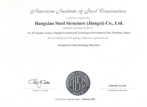 2018年1月5日,必威(betway88西汉姆联)官方网站-WestHamUn(江西)有限公司获得了由美国钢结构协会颁发的“AISC”认证证书。作为江西省首个通过AISC认证的钢结构企业,江西必威BetWay在线官网已连续三年通过AISC认证,这不仅证明了江西必威BetWay在线官网在钢结构领域的实力,也为公司进一步拓展国际市场提供了有力的通行证。