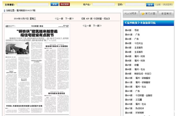 2014年12月17日,《福州晚报》第A28版《今日财富·综合》版报道:《钢铁侠”建筑越来越普遍榕住宅建设有点脱节》。