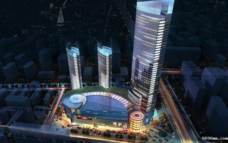 连云港苏宁广场工程位于连云港商业的核心位置——新浦商圈,周边交通便利,拥有绝佳景观视野,主题定位为电器旗舰店、顶级购物中心、五星级索菲特酒店、高档住宅、酒店式公寓。本工程地下三层、地上最高41层,由3 幢塔楼和商业裙楼组成,项目总建筑面积约22万平方米,高度200米,建成后将成为连云港市中心地区乃至苏北沿海规模最大、业态最全、档次最高的标志性建筑。